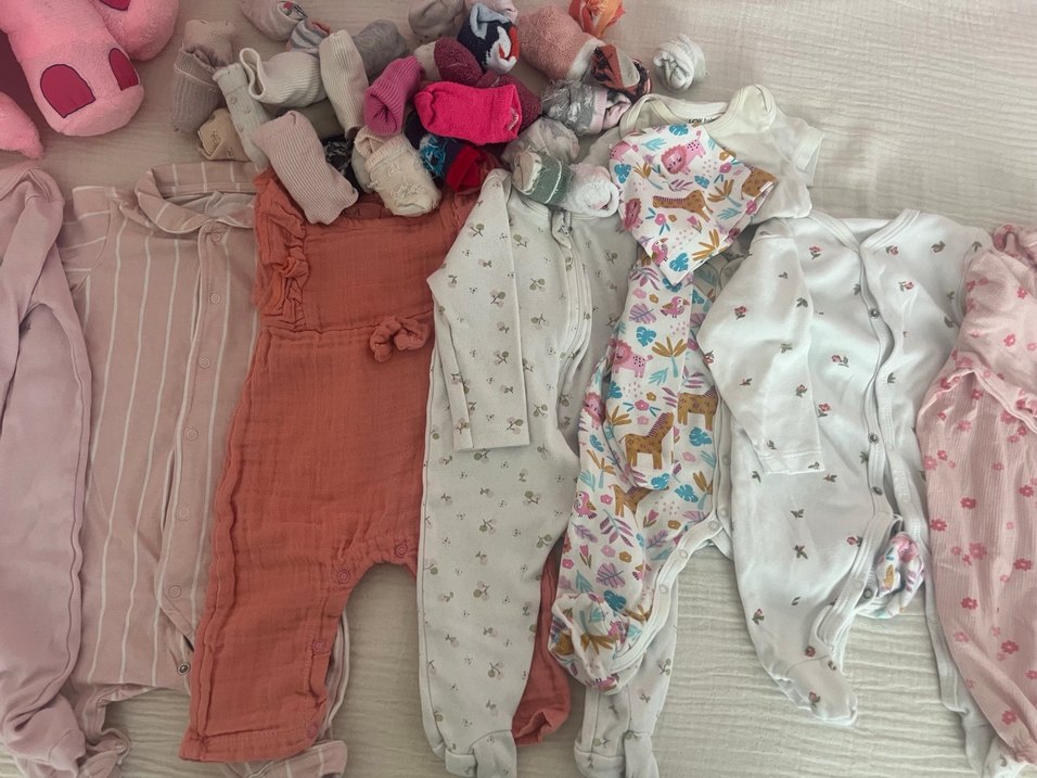 Lekeli olanlarda mevcut fiyatı uygun tutuyorum Hello baby lc Waikiki defacto tulumlarda mevcut 8 adet tulum 2 tane tulumun takımı zıbın 2 tane çıtçıtlı fırfırlı üst giyim. 20-30 tane çorap 1 adet zıbın 0-3 0-1 3-6ve 6 ay ve 6-9 ay ürünlerdir