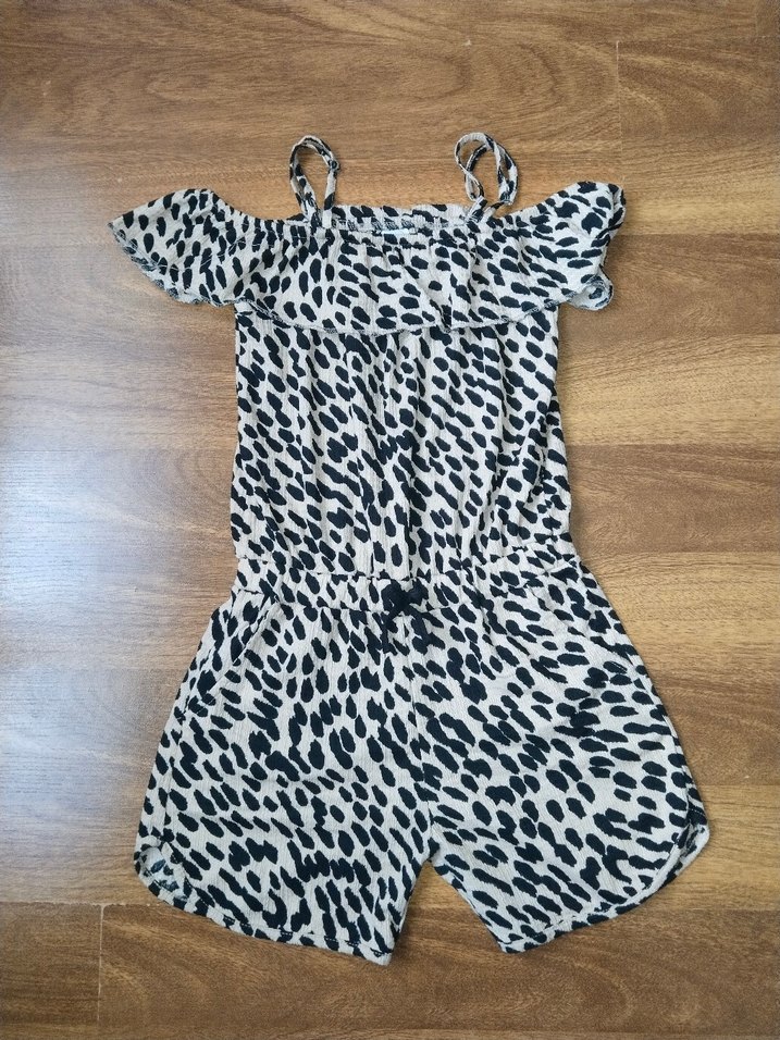 Kız bebek tulumu zebra desenli, fırfırlı ve ince askılıdır, gri ve kahverengi tonlarındadır. tulum rengi flastan dolayı farklı çıkmış yakın çekimdeki rengindedir