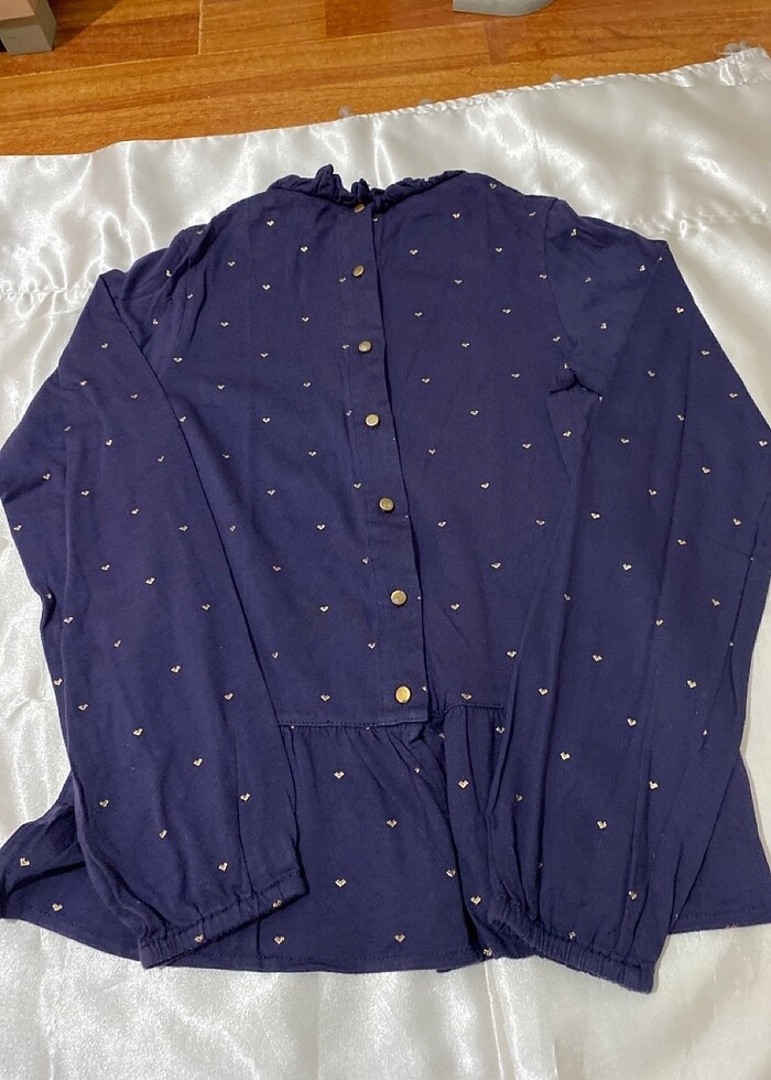 Penye uzun kollu bir tişört düğmelerde Yıkamaya bağlı solmalar var bir tanede yedek bir düğme var