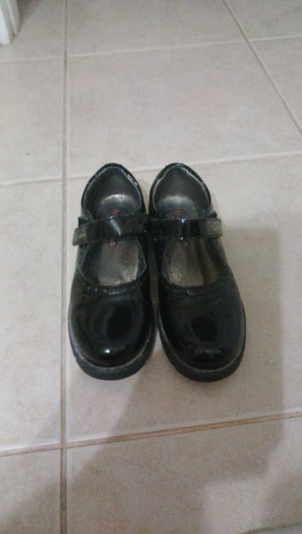 Tokalı bantlı, rugan görünümlü siyah erkek çocuk ayakkabısı, gotik tarzda ve desensizdir.