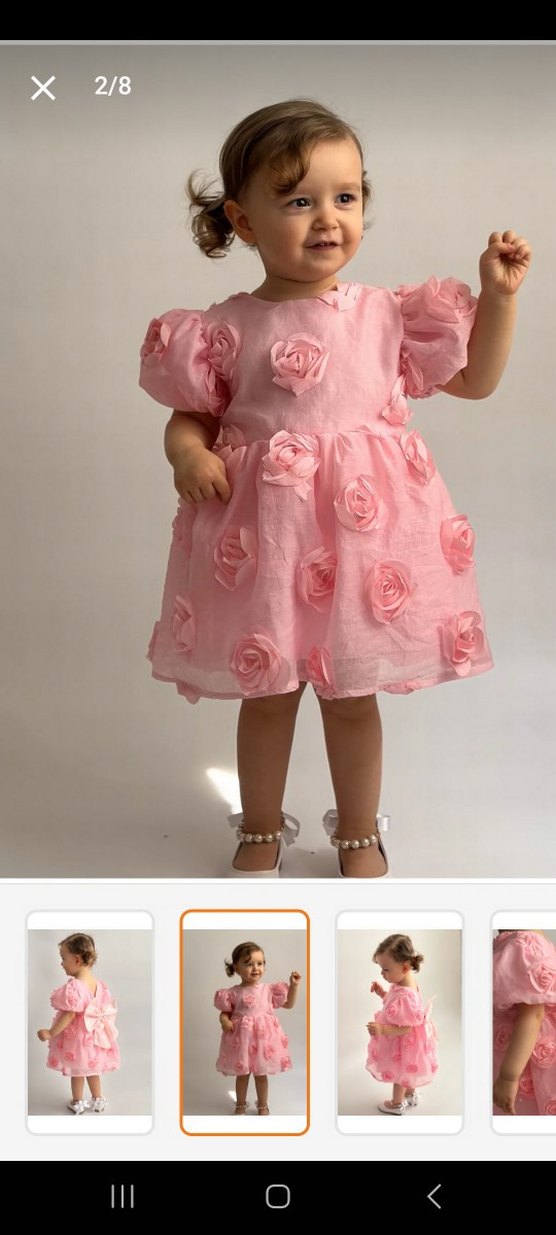 Kız Çocuğu fiyonklu ve gül detaylı elbise