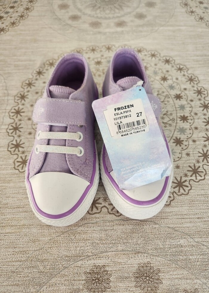 27 numara Frozen markası etiketli sıfır hiç kullanılmadı. Lila rengi babet ayakkabı . İhtiyaç fazlası olduğu için satıyorum.