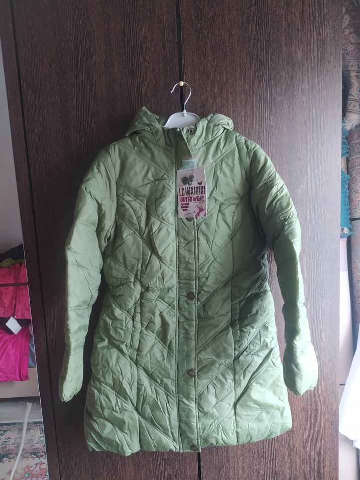 kız çoçuğu Uzun Yeşil Düğmeli Kış Montu
