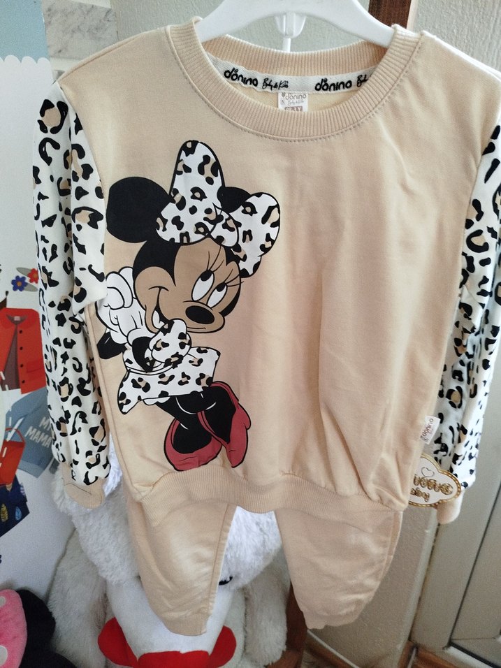 pamuklu, uzun kollu, 2 iplik,leopar desenli . Minnie baskılı, bisiklet yaka, sokak stiline uygun.
