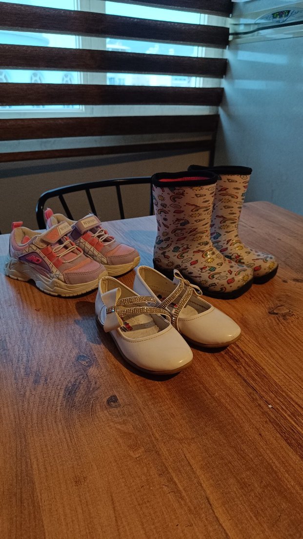 Kız çocuk çeşitli ayakkabılar 3' lü alımda 400.. Tek olarak tanesi 150-200 hiçbir sorunları yoktur.