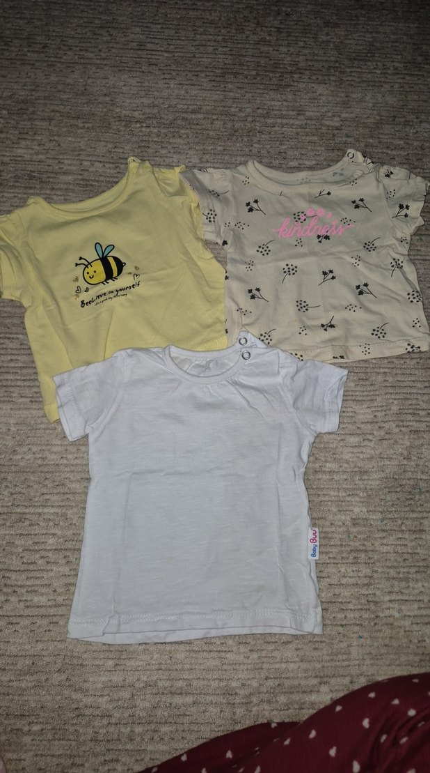 Yumuşak pamuktan yapılmış, bol kesim, kısa kollu kız çocuk tişörtü seti. Pastel sarı arı baskılı, bej çiçek desenli ve düz beyaz renklerde. Rahat bisiklet yaka. tanesi 50 dır