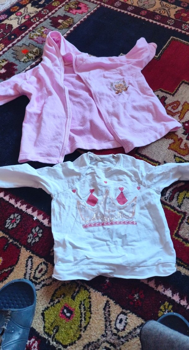 Renkli baskılı taç desenli, düğmeli, bol kesim kız çocuk uzun kollu sweatshirt. Yumuşak ve sıcak kumaştan, sade sokak stili için uygun.