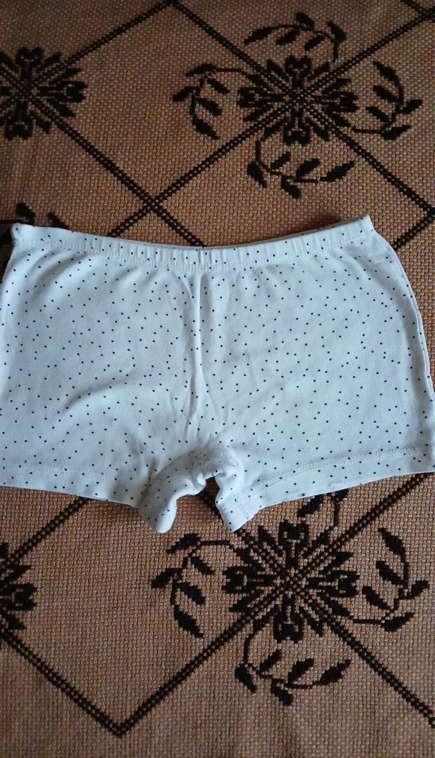 Beyaz pamuklu mini şort, fitted kesim ve ince siyah noktalarla günlük rahat kullanım için uygundur.