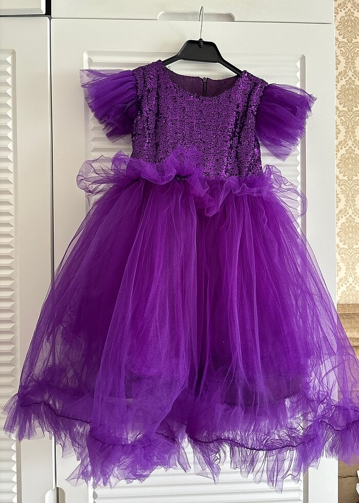 Sadece 1 kez düğünde giyildi tertemiz,ölçüleri mevcut.5/6yaş için uygundur.Altında 3kat tülü mevcuttur istediğiniz gibi kabartabilirsiniz