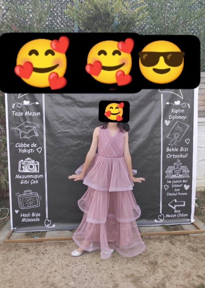 Ürün bı kere mezuniyette kullanılmıştır . Rengi pembe mor tonları hoş bir renk