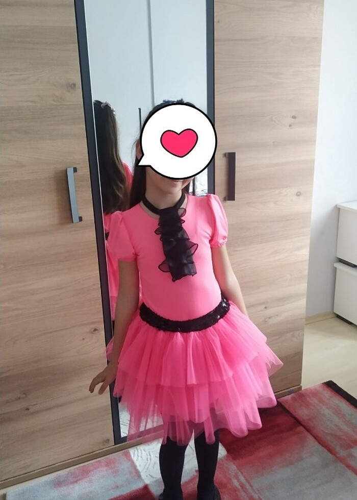 8 yaş özel dikim iki kez giyildi .Eteğin beli payetli ve lastikli boyu ise 36.5 cm , üst bady alttan çıtçıtlı
