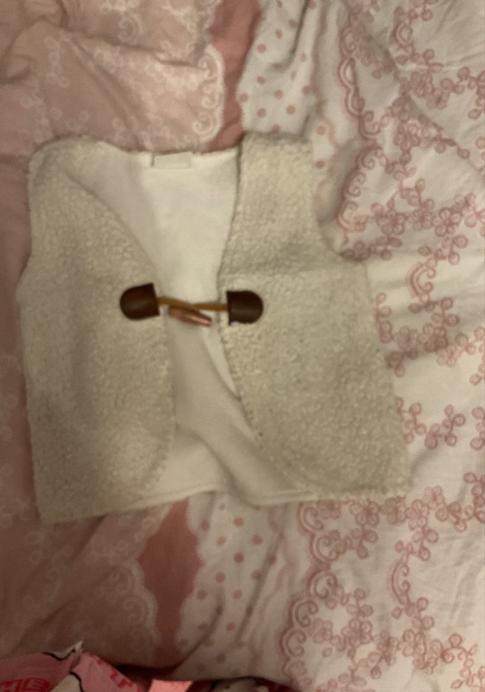 Düğmeli, kesimli yaka detaylı beyaz kız çocuk yeleği, yumuşak ve sıcak dokulu kumaştan üretilmiştir. Kolsuz ve sade bohem tarzda tasarlanmıştır.