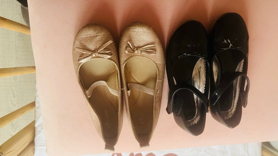 Siyah olanın fiyonkları çıktı ama o şekilde kullandık onu hediye edeceğim iade kabul etmiyorum bilerek alım yapınız görselde kusurlarını ekledim Parlak altın renkli, fiyonk detaylı kız çocuk babetleri, modern klasik tarzda.