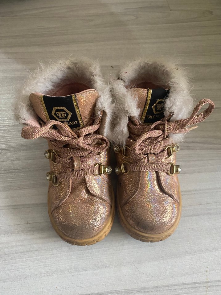 Kız çocukları için parlak altın renkli ve bilek çevresinde kürk detayına sahip sokak stili botlar. Bir kaç kez giyildi hediye gelmişti ben beğenmedim o sebepten satıyorum yırtığı falan yoktur sadece dura dura sanki kürk kısımları eskidi