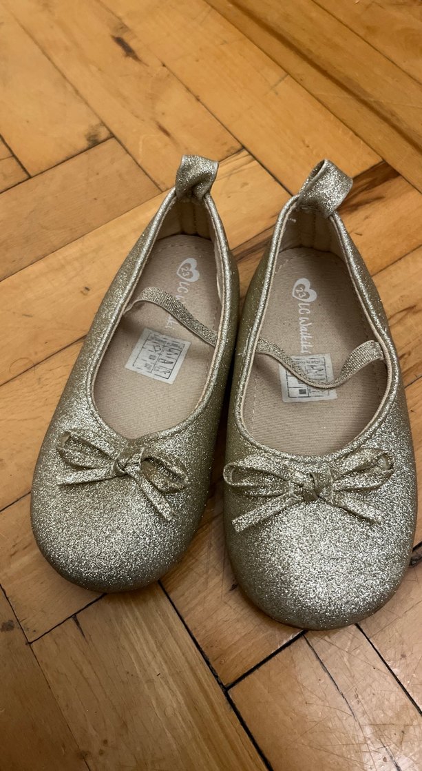 Kız Çocuk Altın Renk Parlak Fiyonk Detaylı Babet