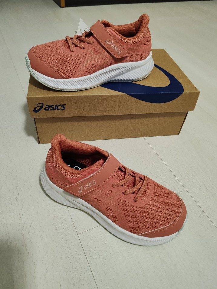 , baskılı desenli Asics kız çocuk spor ayakkabısı. Velcro bantlı ve kauçuk tabanlı, sokak stili için uygundur.