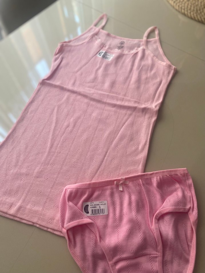 Pastel renkli, yumuşak ve nefes alabilen kumaştan yapılmış kız çocuk atlet ve külot takımı. 4 -9 yaş arası atlet külot takımı marka temsilidir
