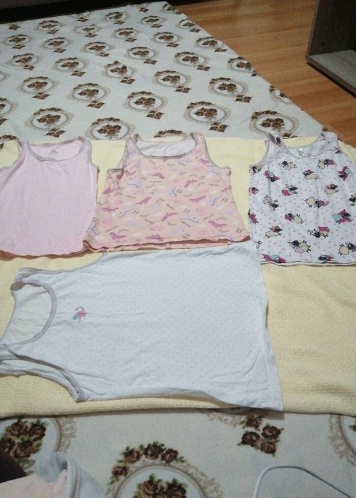 Kız çocuk atletler yırtık sökük yok. Kullanımdan kaynaklı biraz renk solması mevcut. 2.resimdeki atletin markası penti diğerlerinin etiketi kesik olduğu için markasını hatırlamıyorum . Tanesi 35 TL. Toplamda 140 tldir