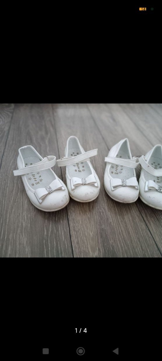 Beyaz kız çocuk babet ayakkabılar, gri nakışlı fiyonk detaylı, kauçuk malzemeden, modern klasik tarzda, bantlı kapanışlı. 24 no.