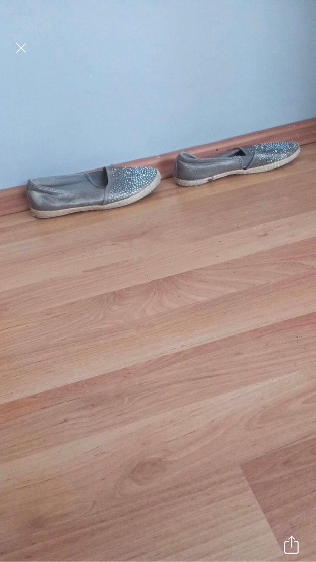 Gri bağcıklı, lastik malzemeden yapılmış topuksuz kadın espadril. Minimalist ve bohem tarzda, dış mekan kullanımı için uygundur. Ürün sağlam ve defosuzdur kenarları jüt örme