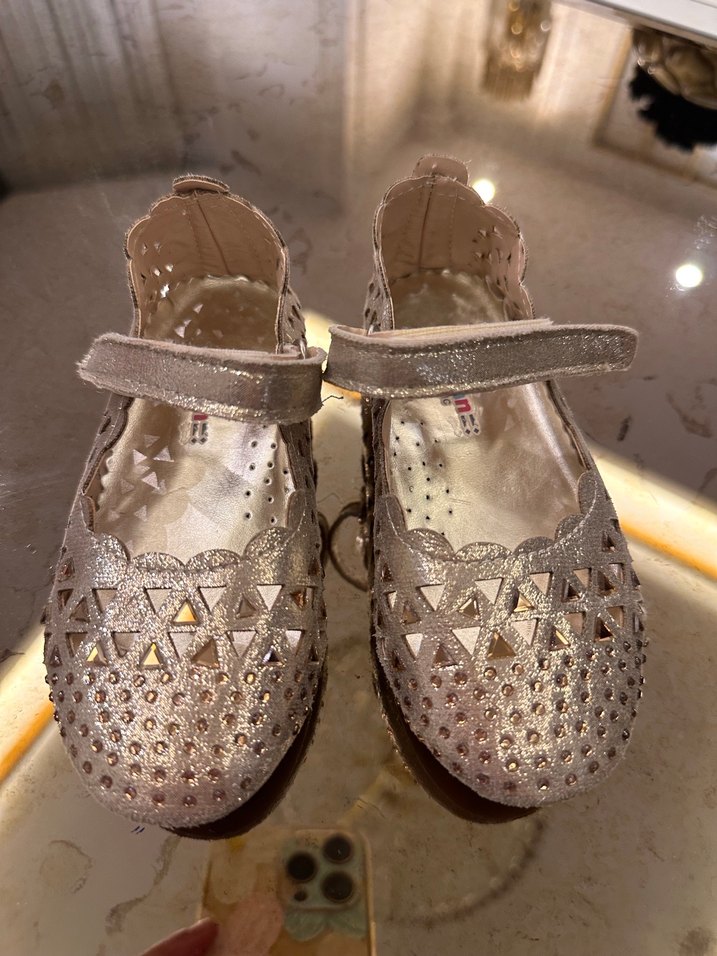 Minican taşlı deri kız çocuk babet. Bir defa giyildi. Yepyenidir.