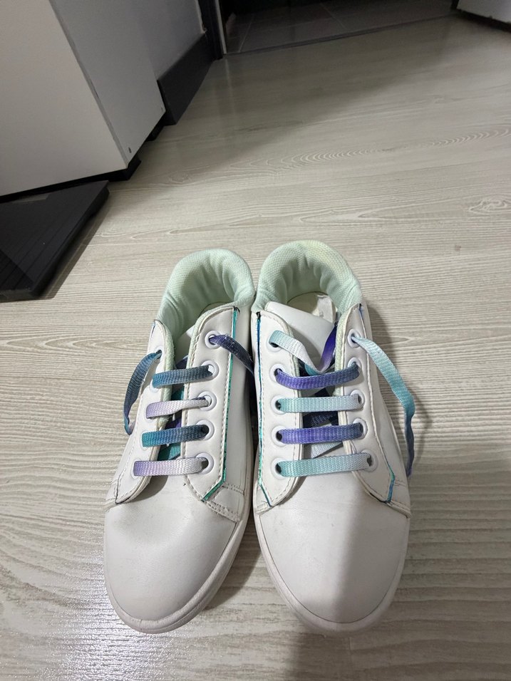 Kız çocukları için beyaz sneakers, pastel pembe ve mor bağcıklı elastik bağcıklar, kauçuk taban ve rahat sokak stili. 2Li fiyattır resimde görüldüğü gibidir