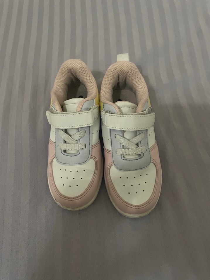 Bej renkte, pastel tonlarda batik desenli, lastik tabanlı, cırtcırtlı kız çocuk spor ayakkabısı. Trend sokak stili için uygundur. 25 no. Küçüldüğü için satışta