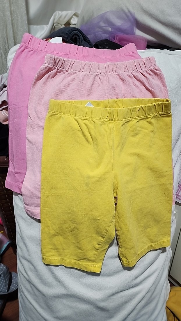 Kız çocukları için pamuklu, fitted kesim şortlar. Pastel pembe ve sarı renklerde, desensiz ve sade tasarıma sahiptir. 3 renk şort ortadaki yumuşak polo kumaştır. üsttekinde ve polo kumaşta sadece defo ve kücuk lekeler de var. Fiyatı makul tutuyorum.