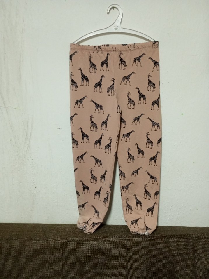 Yumuşak ve sıcak kumaştan, bej renkli, baskılı zürafa desenli, rahat kesim kız çocuk taytı. Günlük sokak stiline uygun.