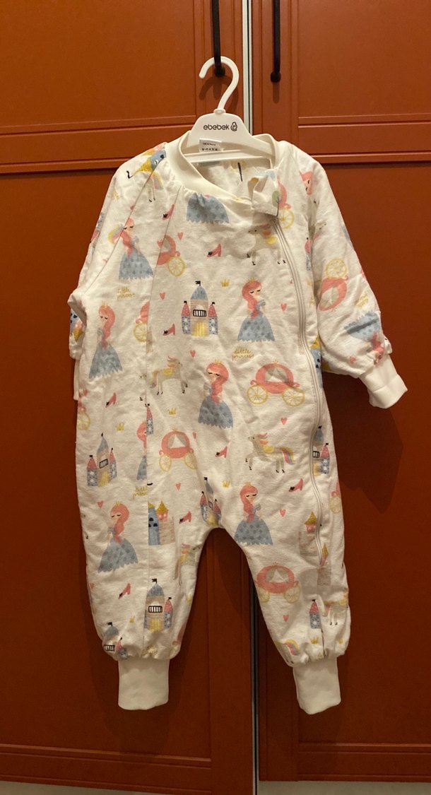 Beyaz renkli, pastel baskılı kız çocuk pazen uyku tulumu uzun kollu ve fermuarlıdır. Cift tarafli giyilebilir. Ilk yikamasini yaptim bir daha hic kullanmadim fazla tulum .