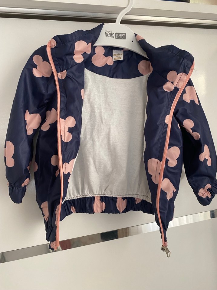 Kız çocukları için baskılı ve fermuarlı, sentetik kumaştan yapılmış, dar kesim yağmurluk. Mavi ve gri tonlarında, crew neck yakalı, sokak stili. Defosuz sıfır
