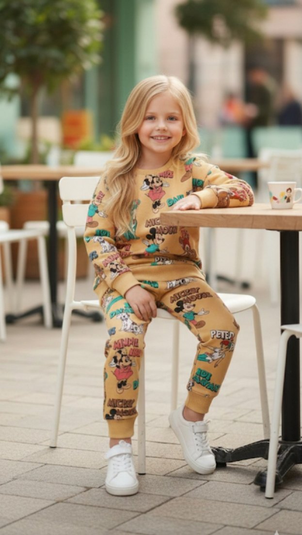 Kız Çocuk Baskılı Kahverengi Sweatshirt Takımı