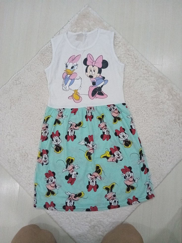 9-10 yaş Kolsuz, ve bol kesim pamuklu elbise, Pastel renklerde Minnie ve Daisy baskılıdır.