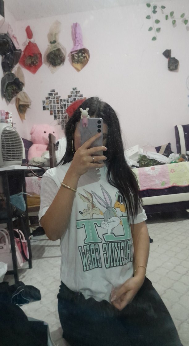 Kız çocukları için pamuklu, bol kesim, kısa kollu ve yuvarlak yaka baskılı T-shirt. Pastel beyaz renkte, şeffaf detaylı, rock punk tarzını yansıtıyor.