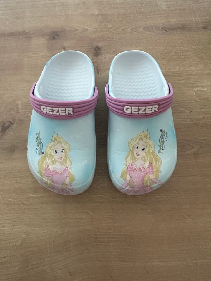 Gezer marka, baskılı pembe kauçuk terlikler, tokalı kayışlı, bohem ve retro tarzına uygun. 29 numara spesifik bir defosu bulunmamaktadır.