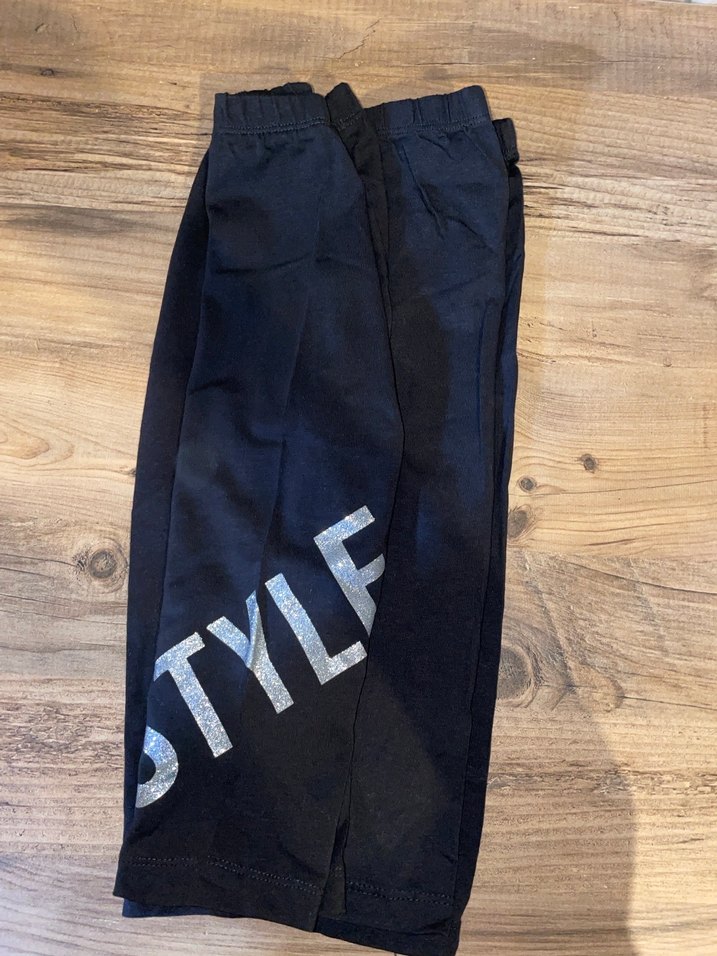 Esnek bel bantlı, baskılı 'STYLE' detaylı, siyah renkli, sentetik kumaştan üretilmiş kız çocukları için bol kesim tayt.