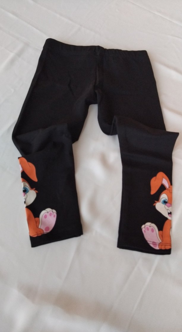 Kız çocukları için baskılı tavşan desenli, elastik bel bantlı, yumuşak ve sıcak kumaştan siyah tayt. Rahat sokak tarzı için uygundur.
