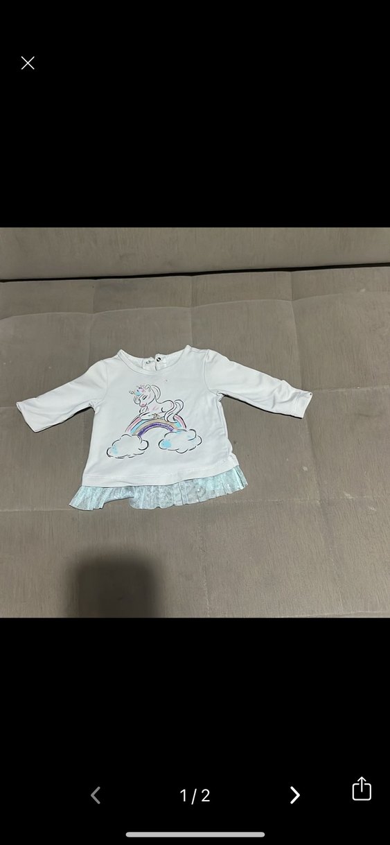Pamuklu, uzun kollu ve yuvarlak yakalı kız çocuk tişörtü. Pastel tonlarda baskılı unicorn deseni ve etek kısmında fırfır detay bulunur. Rahat ve salaş kesimdir.