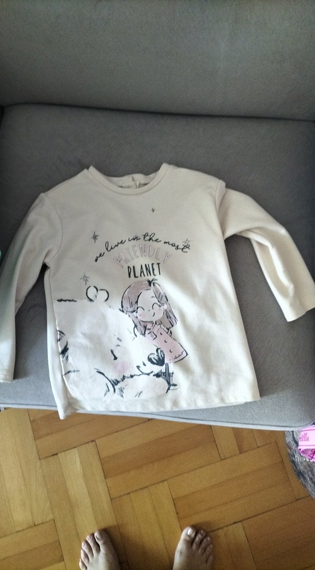 Krem, bol kesim kız çocuk uzun kollu tişört, yumuşak ve sıcak kumaş. Üzerinde PLANET yazılı baskı bulunur.