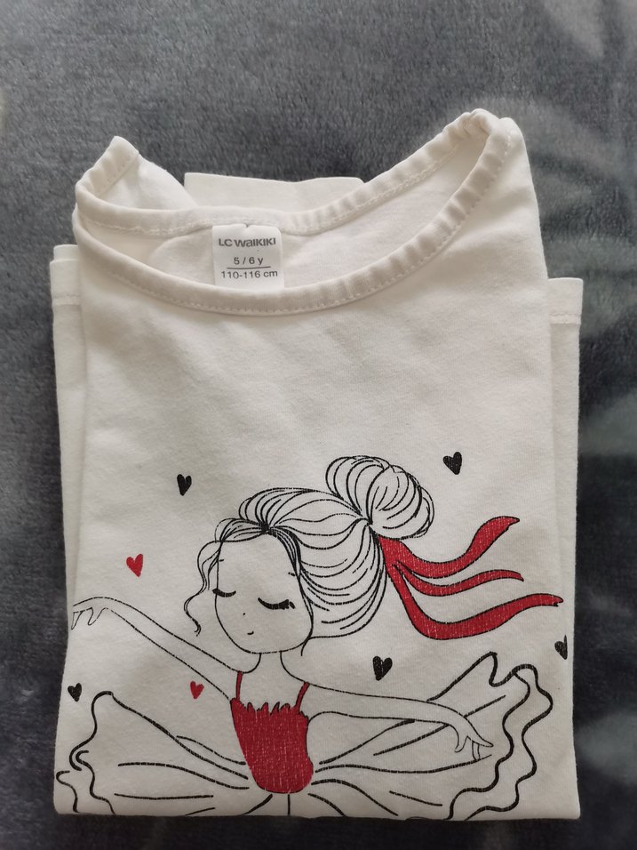 5-6 yaş. Lcv marka kız çocuk uzun kollu tişört. Kumaşı penyedir. Hiç bir leke ve deformasyon yoktur. Değişim ve iade yoktur.