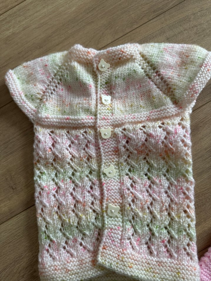 Kız çocuklar için kolsuz, çok renkli pastel tonlarda, örgü dokulu ve bohem tarzda, fitted kesime sahip bir hırkadır. Ön kısmında küçük çiçek şeklinde düğmeler bulunur.