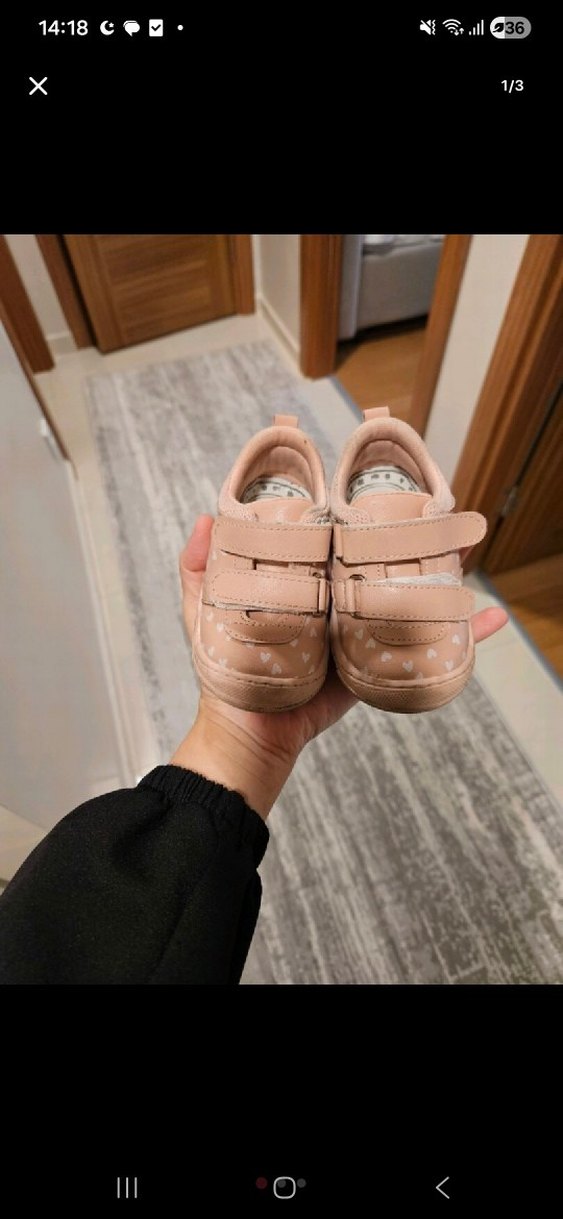 Bej renkte, lastik tabanlı ve bantlı kız çocuk spor ayakkabısı. Pastel tonlarda, desen içermeyen şık tasarım.