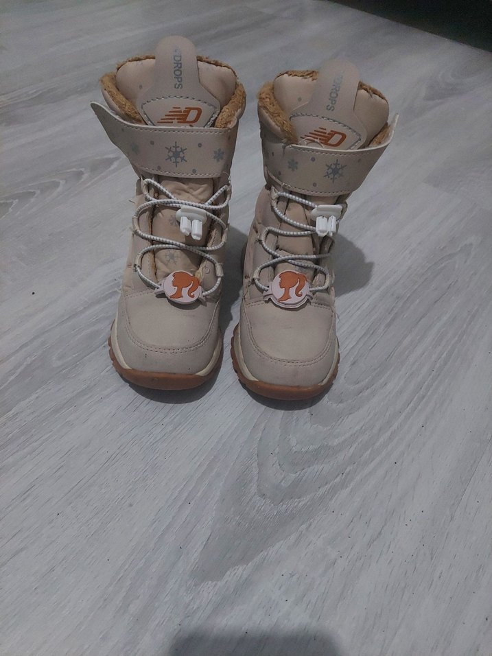 Bej renkli kız çocuk botları, baskılı detaylar, tokalı kayışlar ve kauçuk tabanlı. Rahat ve trend sokak stili için uygundur. hafif kusuru var