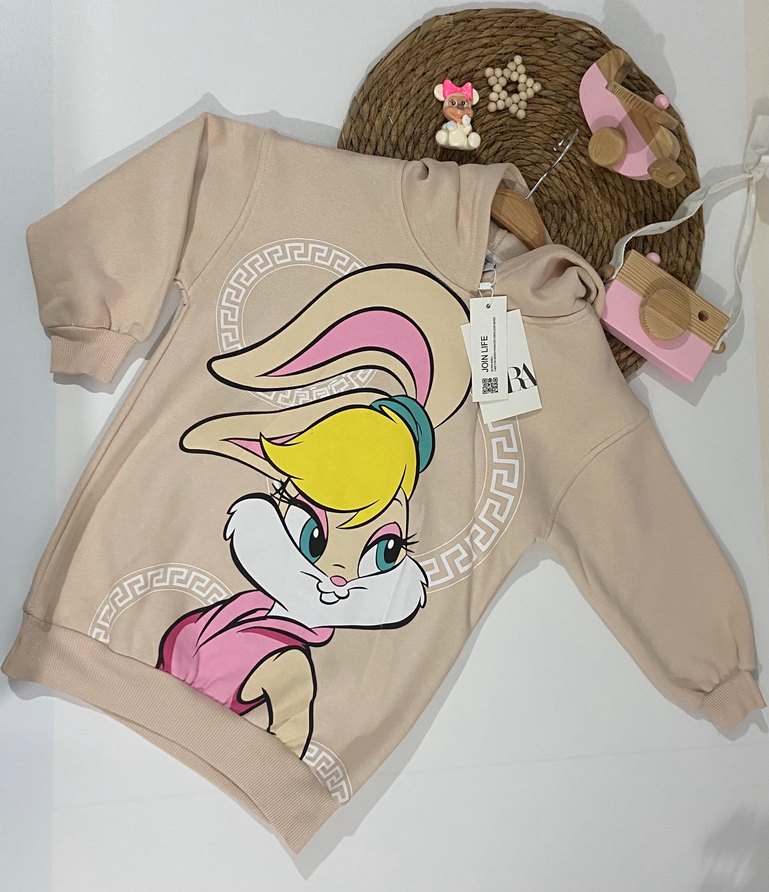 Kız Çocuk Bej Baskılı Sweatshirt 3-8 yaş