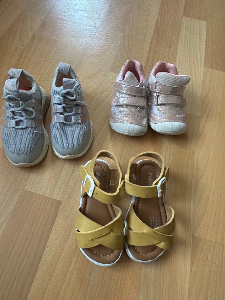 3 adet renkli, cırt cırtlı kız çocuk spor ayakkabısı, sade tasarımlı bir model. 2 spor 1 şık toplam 3 adet ayakkabı