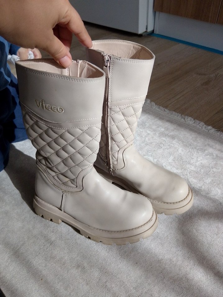 Bej renkli deri kız çocuk botları fermuarlı ve kapitone detaylıdır, trend sokak tarzı için uygundur.