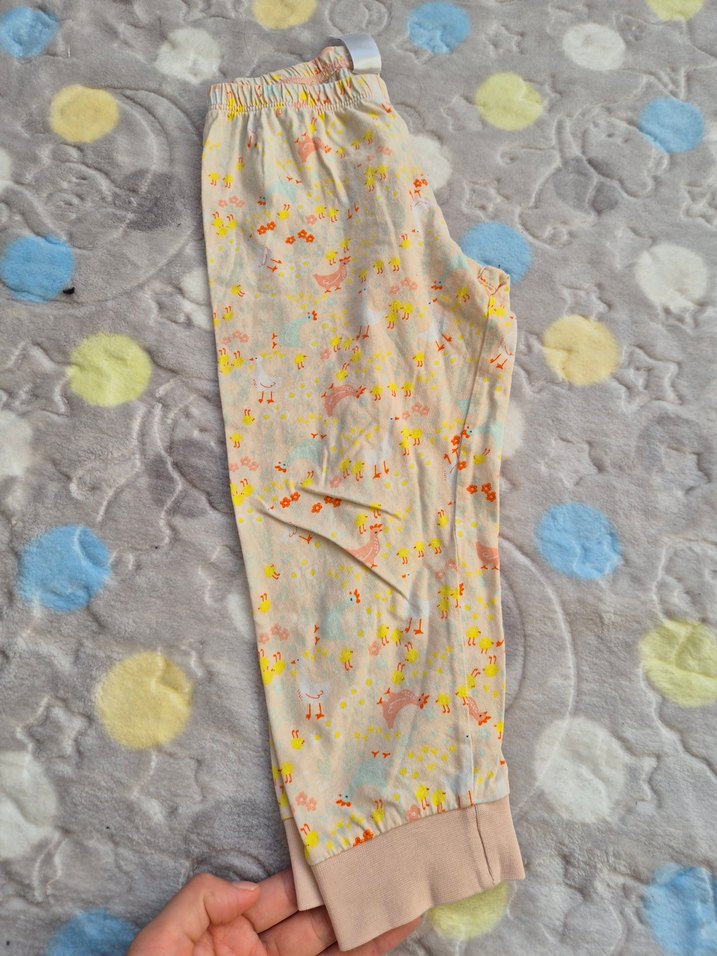 Yumuşak sentetik kumaştan, elastik bel bantlı, bej renkli kız çocuk pijama altı, pastel desenli.