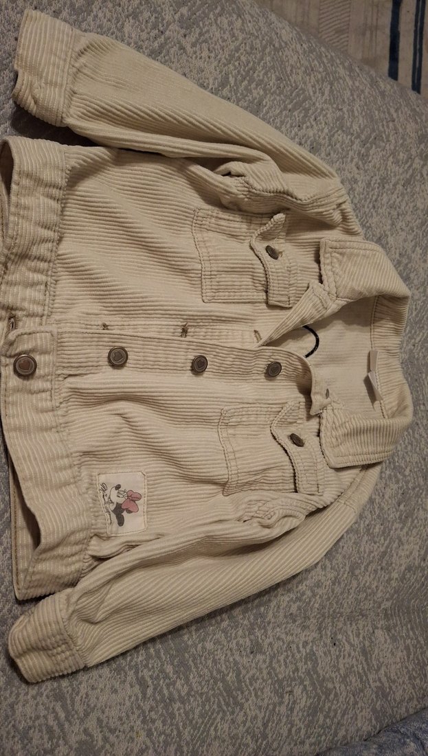 Bej renk pamuk kumaştan, düğmeli ön ve kesik yaka detaylı bol kesim kız çocuk ceketi, günlük sokak stiline uygun.