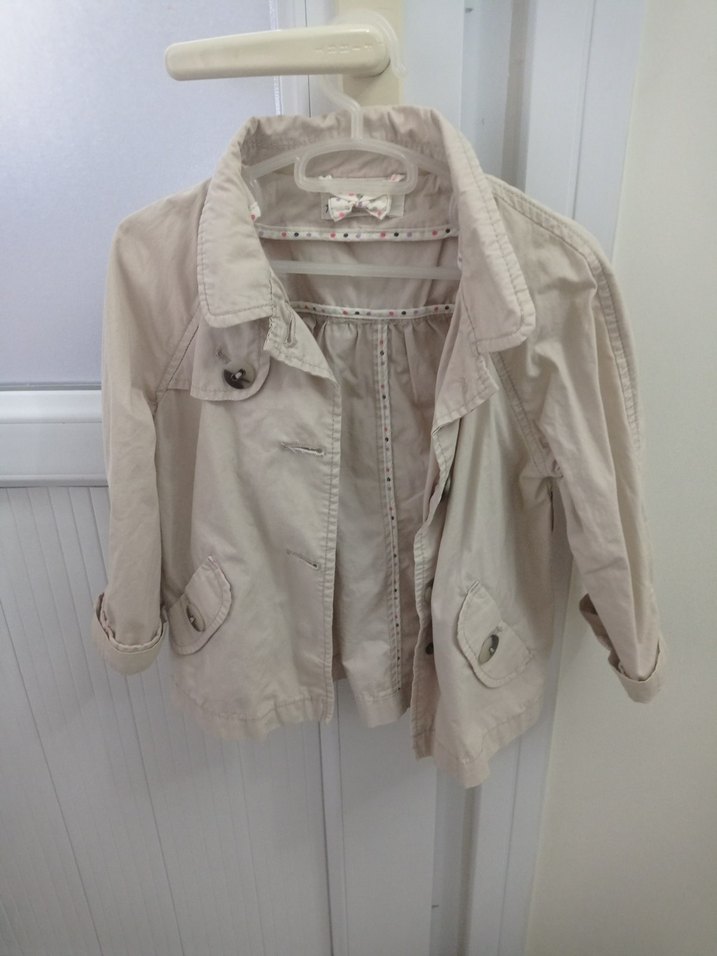 Kız çocukları için bej keten ceket, düğmeli ve keskin yaka detayına sahip. Salaş kesimi ile sokak stiline uygun.