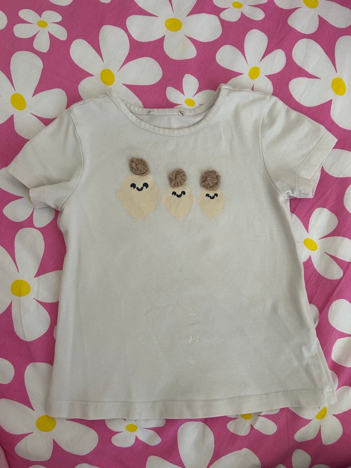 Pamuklu kumaştan yapılmış, kısa kollu ve yuvarlak yakalı bej kız çocuk tişörtü. Rahat kesimli, omuzda düğmeli ve önünde sevimli baskı detayı bulunur.